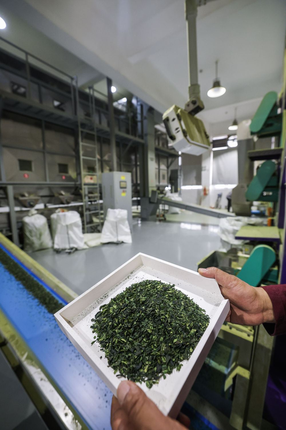 4月21日在武义县更香春语茶叶有限公司拍摄的抹茶生产线。